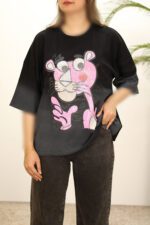 تیشرت باکسی پلنگ صورتی(۵۱۲۳)